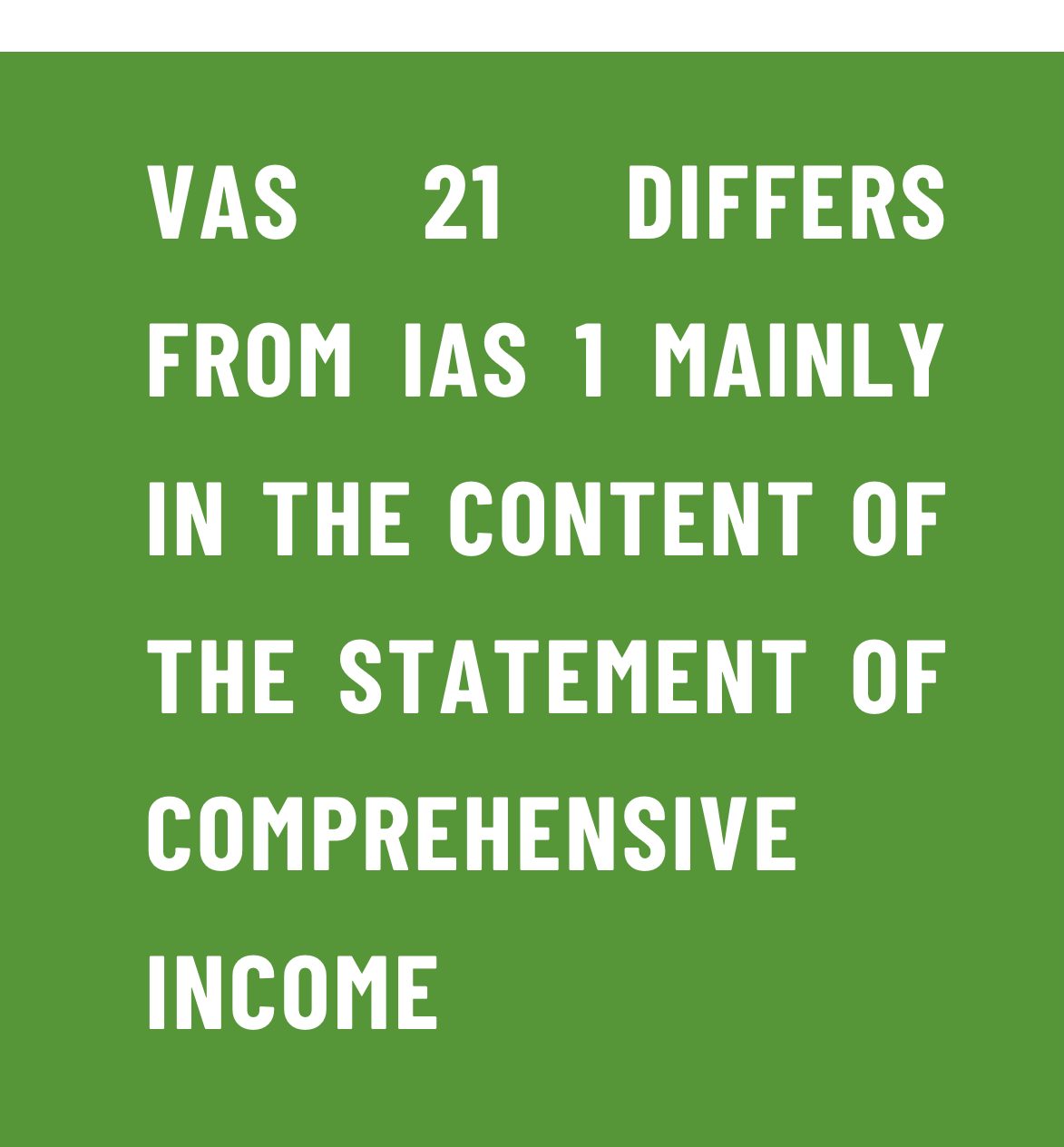 2. Present the income statement and the statement of comprehensive income as separate and independent statements. All the issues regarding the format of the statement of comprehensive income mentioned above have not been addressed in VAS 21.