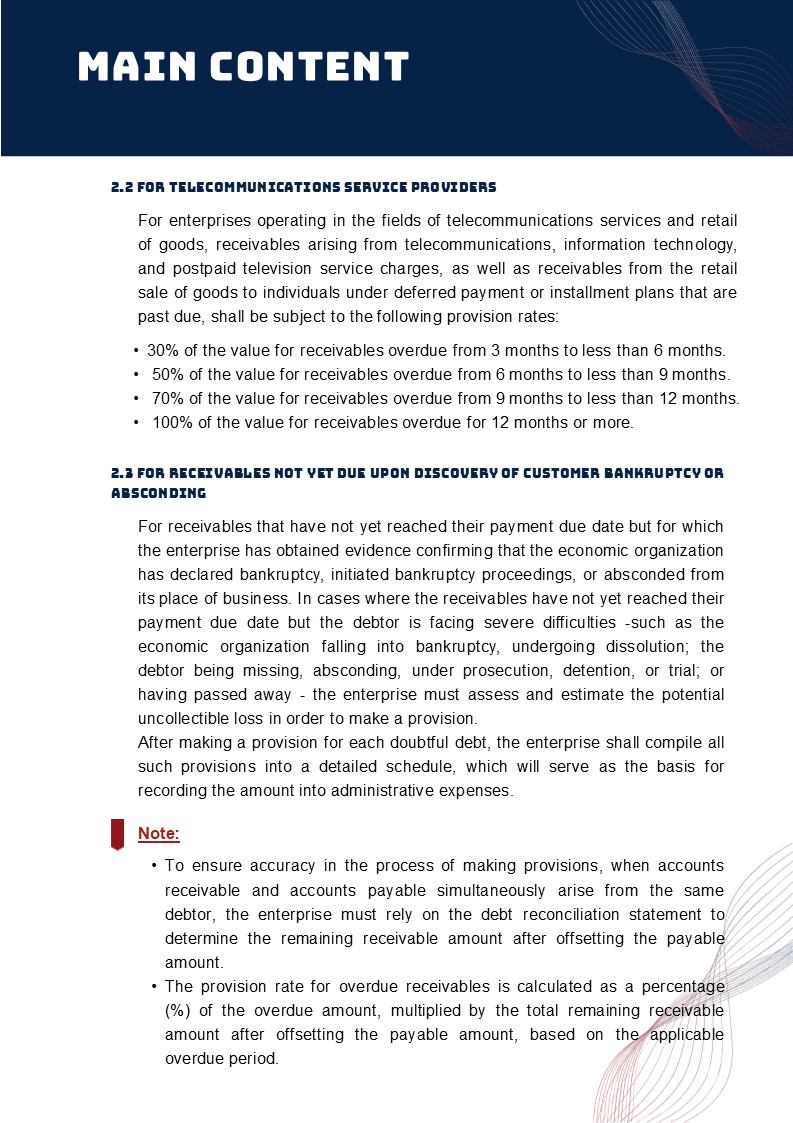 2.3 For receivables not yet due upton discovery of customer bankruptcy or absconding